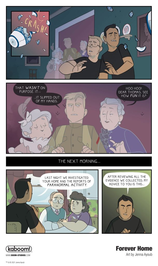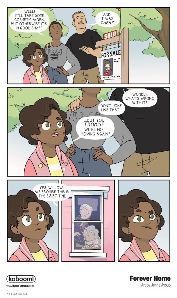Forever Home is a fresh graphic novel for middle grade and younger readers by cartoonist Jenna Ayoub (Adventure Time), from Boom! Studios through its Kaboom! young readers imprint.