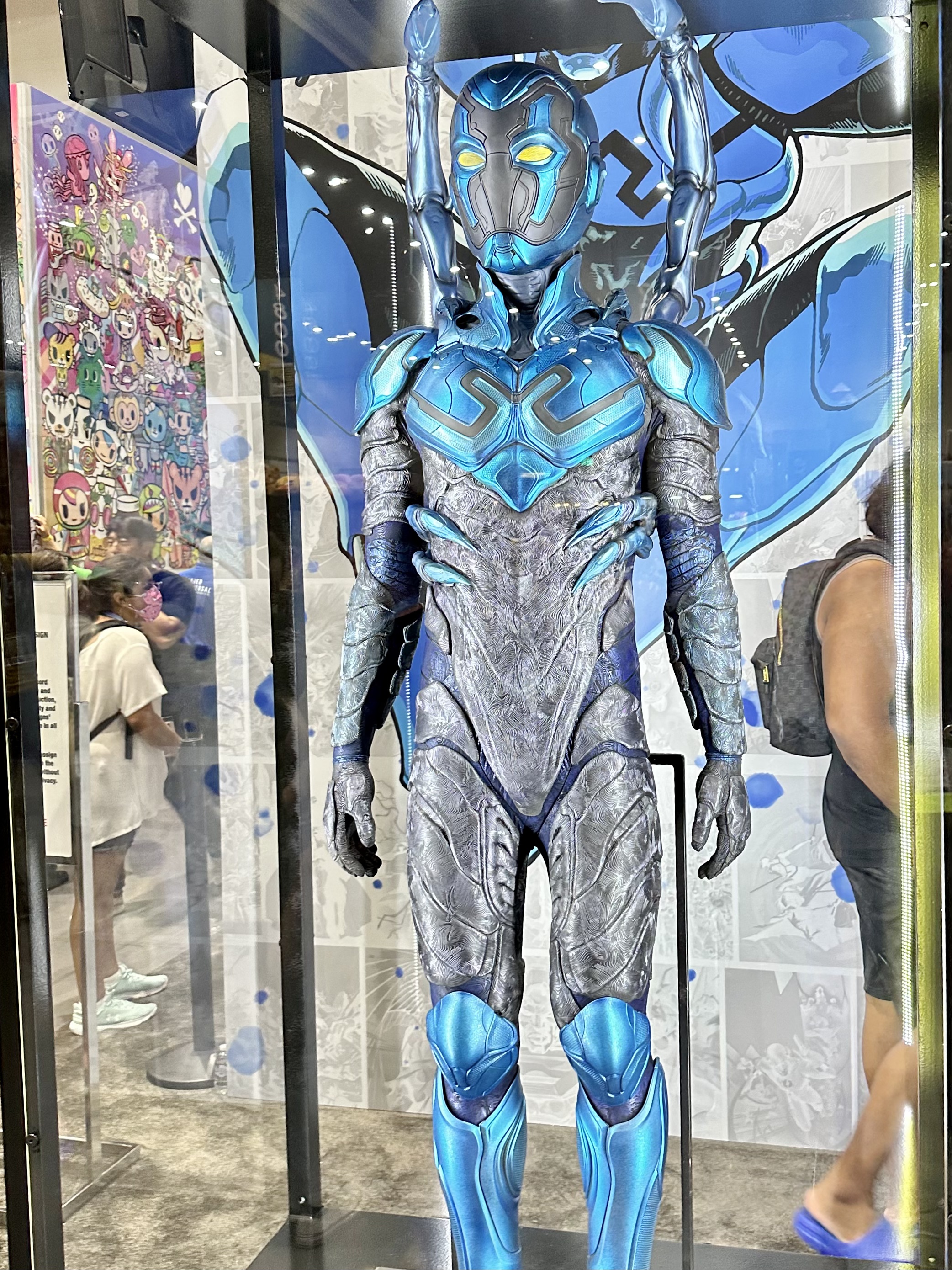 – DC Comics returned to the Exhibit Floor, but now backed into the corner. But now focused more on toy exclusives, comics promotions seemed a bit more pushed to the side. Loved the movie props on display, especially this suit for the upcoming Blue Beetle movie.