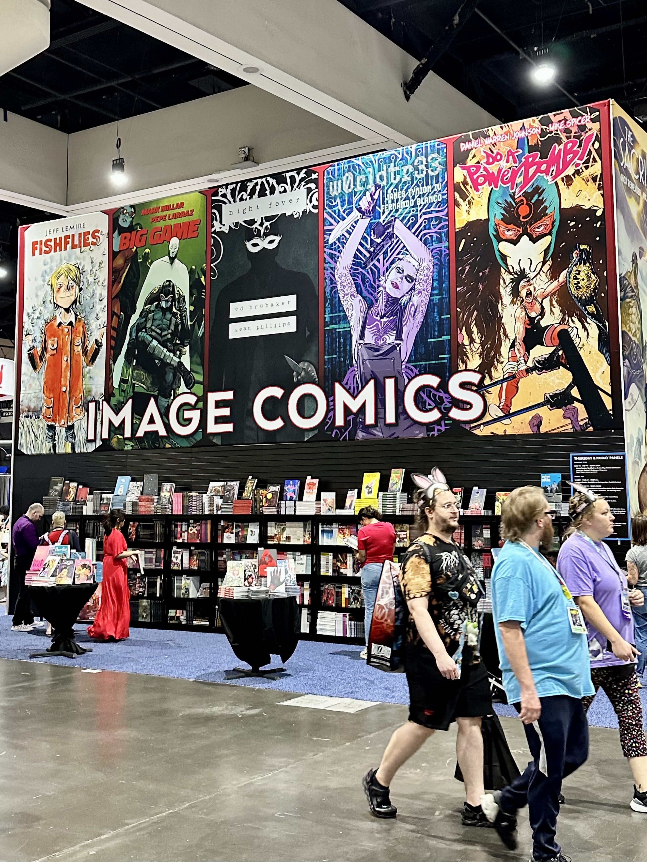 The whole floor here felt more packed, with not just central main booths fronting popular shows and corporate owned pop-culture properties. The small press, artist alley, merchants, gaming, indie publishers all seemed a bit more busy this year. Reasons I think were from Hall H (the largest room holding main events for over 10,000 in attendance) not having as much attention this year, due to the SAG-AFTRA strike stopping Hollywood company backed-celebrity appearances. Less time in Hall H (and waiting in its infamous line), meant more time for other panels and the Exhibit floor.